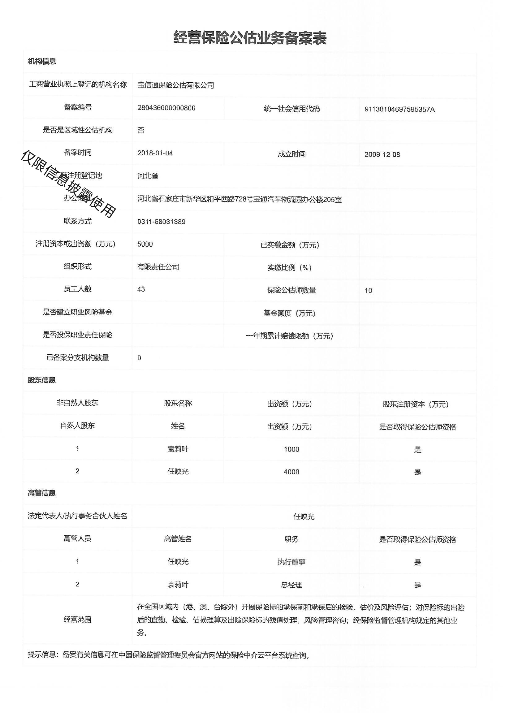 您的位置在:首页 >信息披露>宝信通保险公估有限公司
