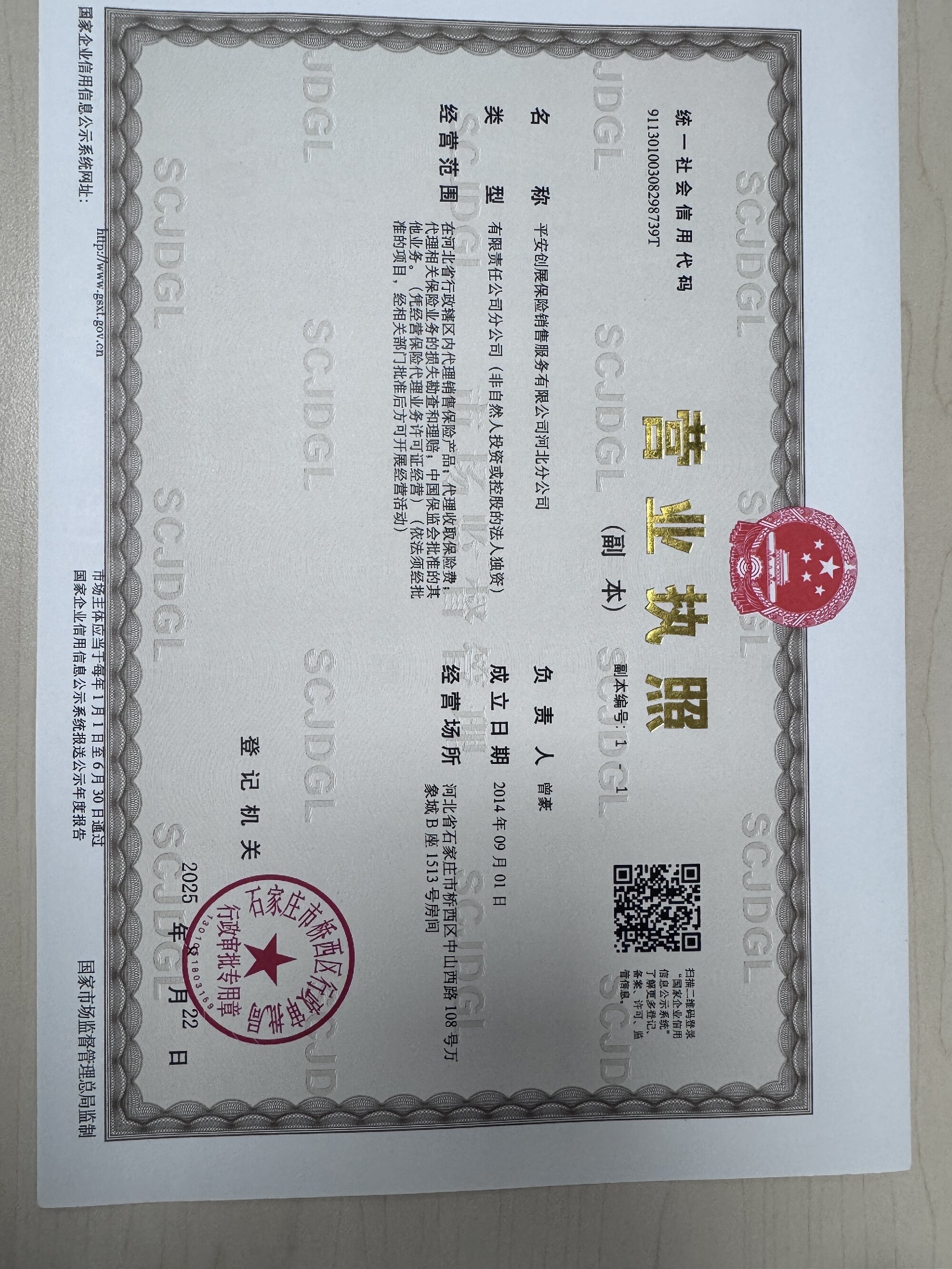 | 公司名称: | 平安创展保险销售服务有限公司河北分公司 | ||||