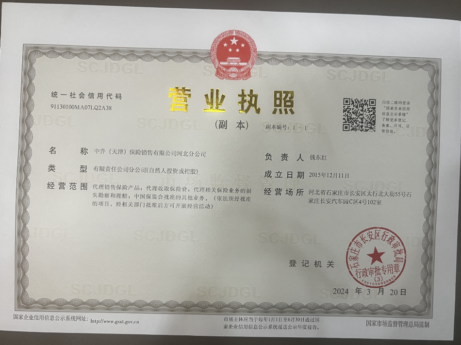 | 公司名称: | 中升(天津)保险销售有限公司河北分公司 | ||||
