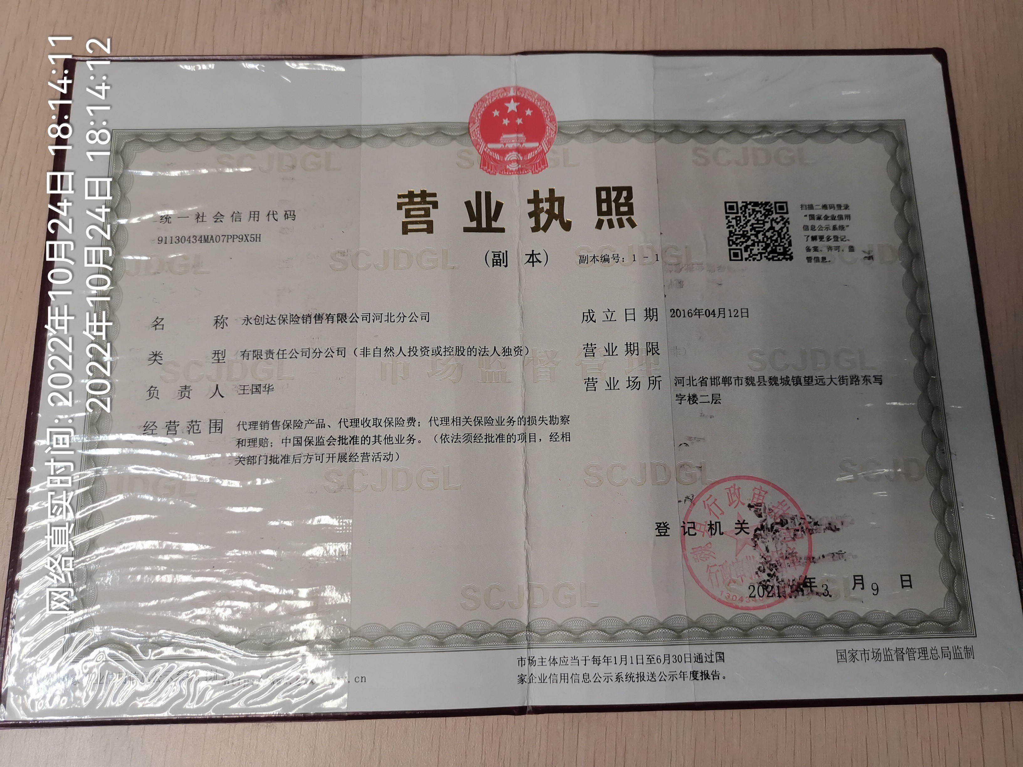 | 公司名称: | 永创达保险销售有限公司河北分公司 | ||||