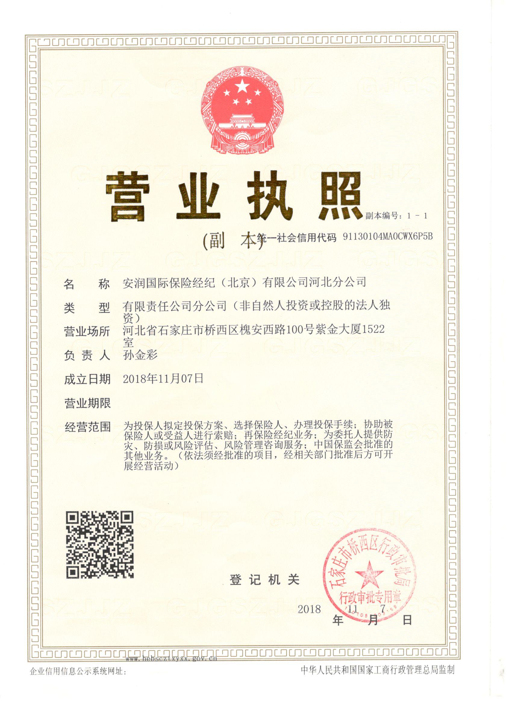 公司名称: 安润国际保险经纪(北京)有限公司河北分公司
