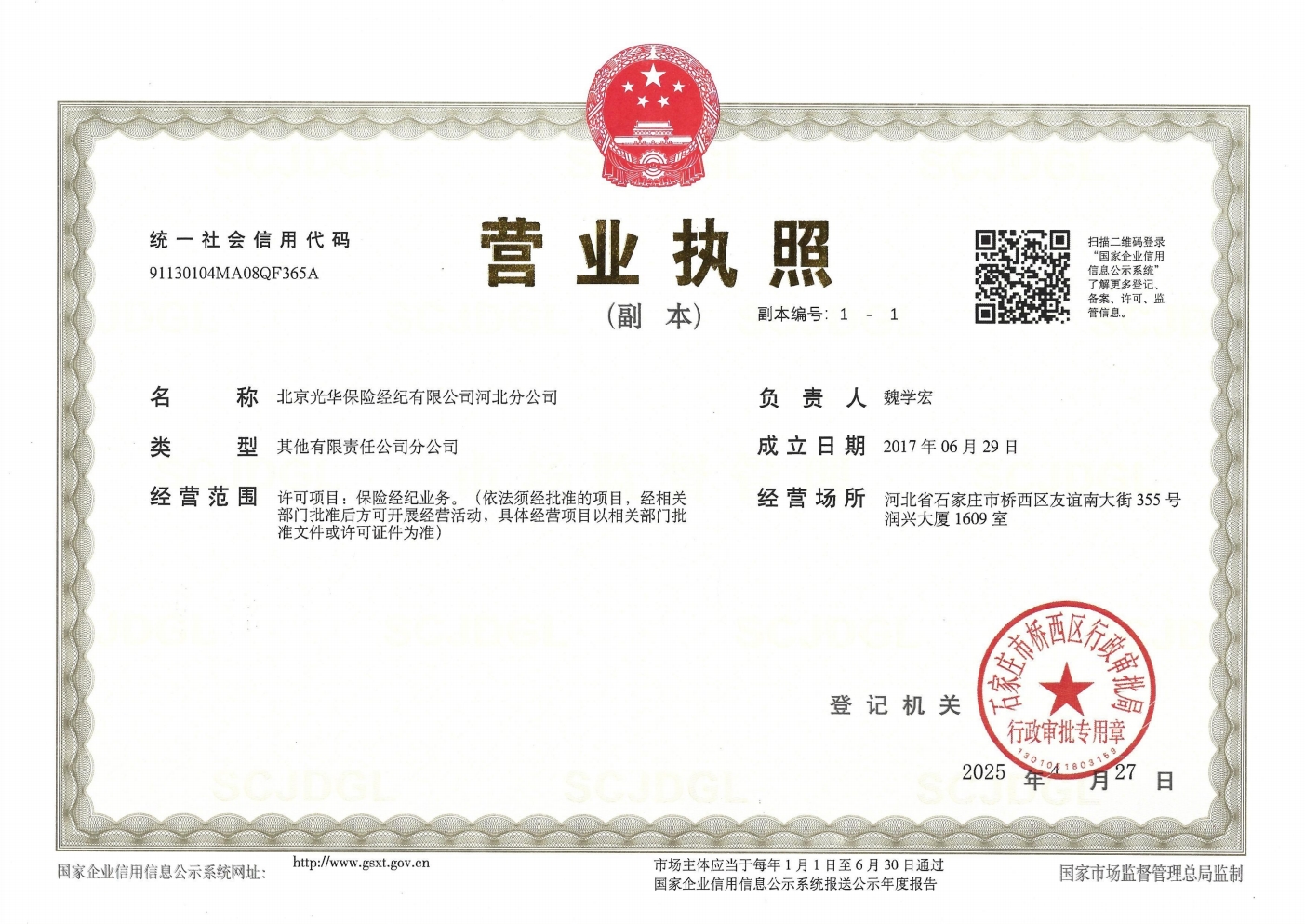 | 公司名称: | 北京光华保险经纪有限公司河北分公司 | ||||