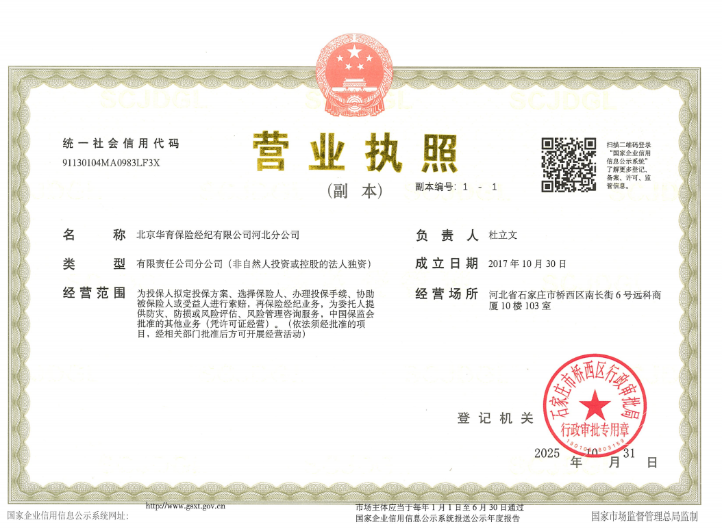 | 公司名称: | 北京华育保险经纪有限公司河北分公司 | ||||