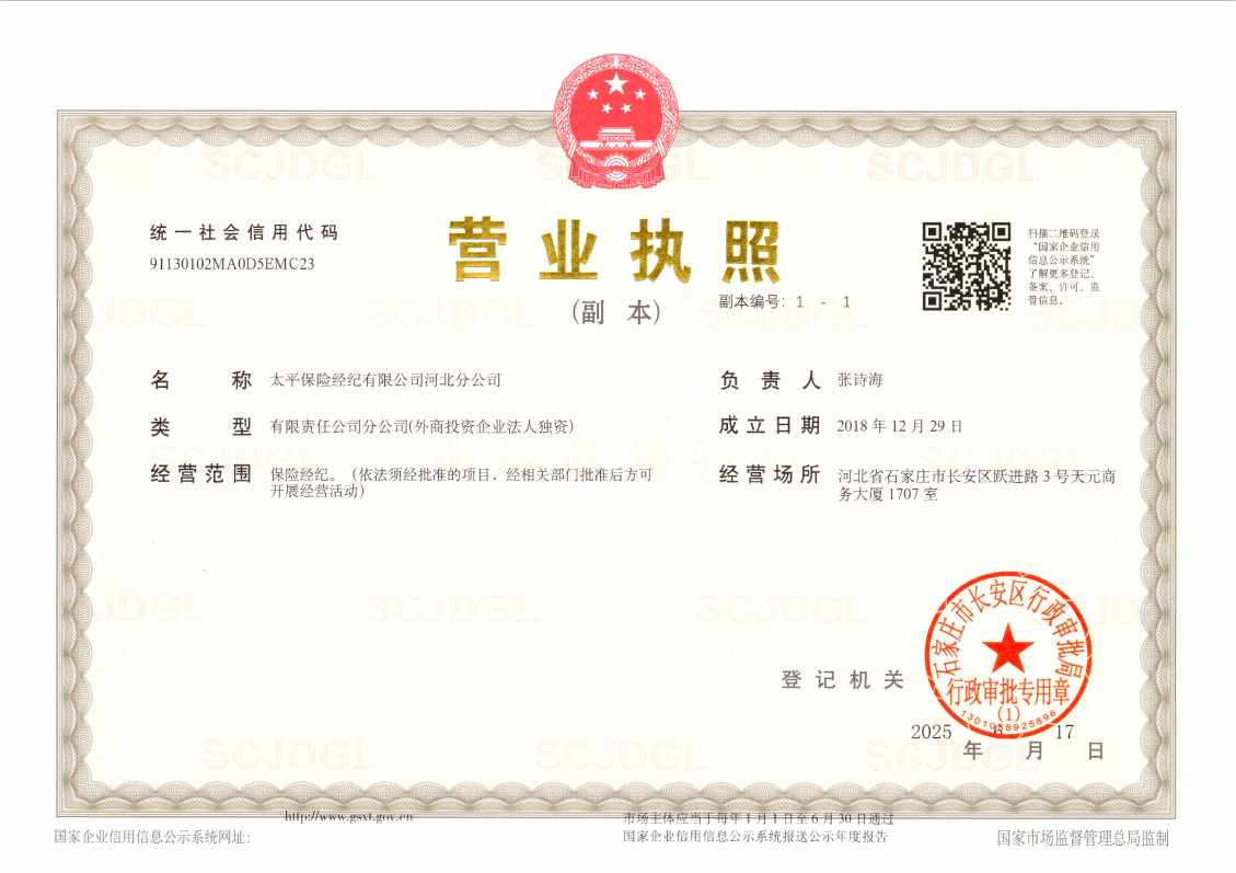 | 公司名称: | 太平保险经纪有限公司河北分公司 | ||||