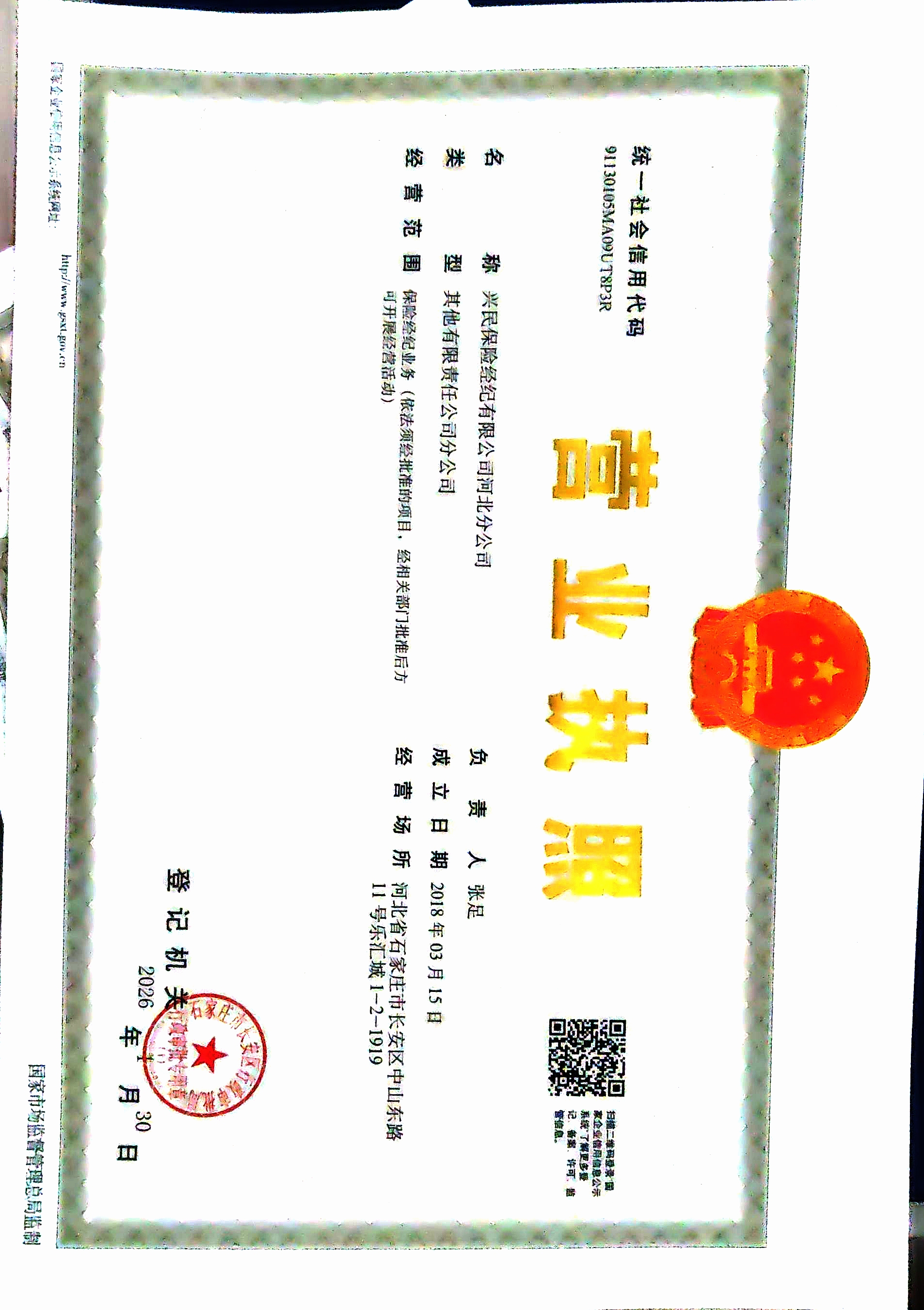 信息披露>兴民保险经纪有限公司河北分公司